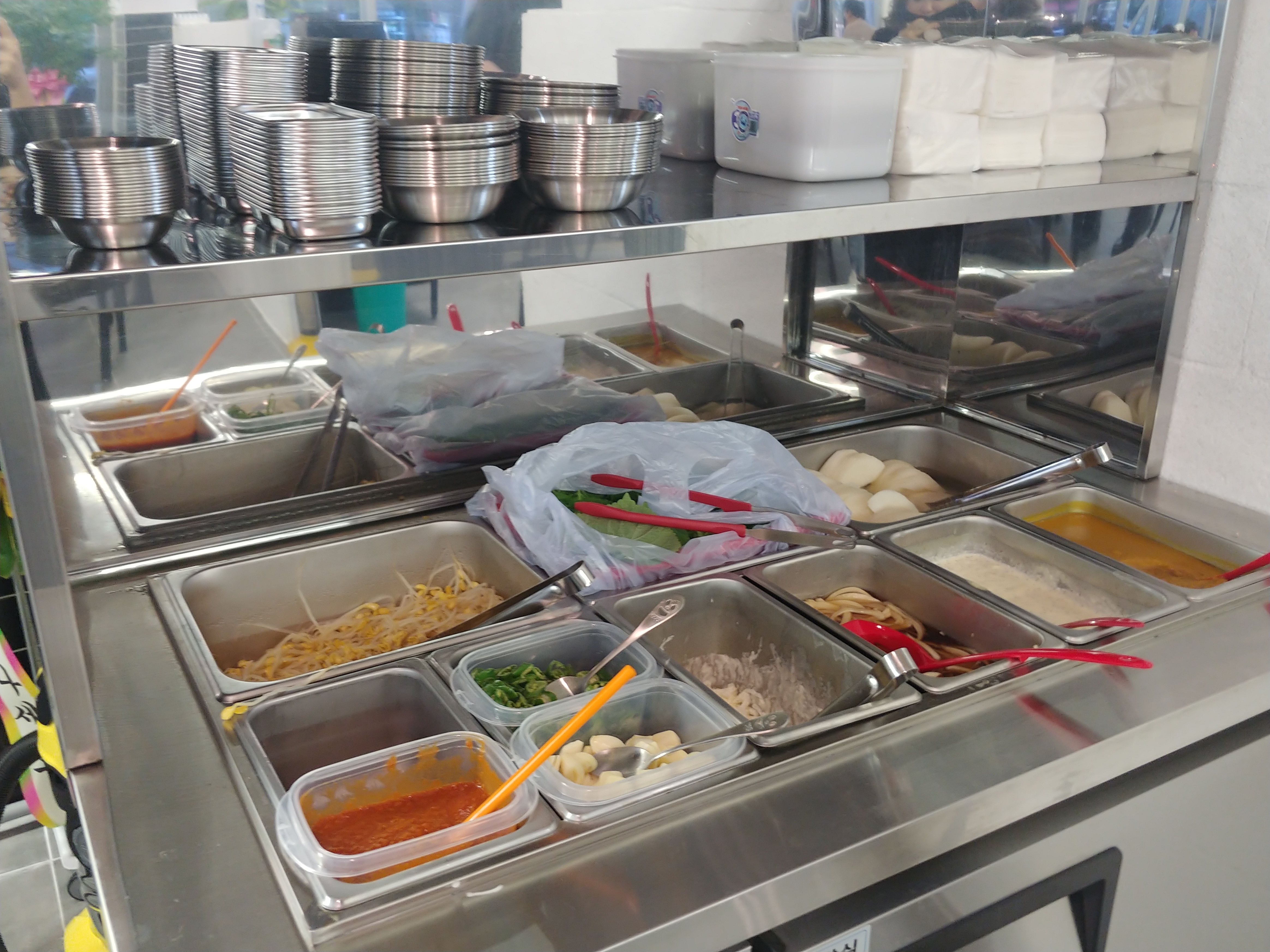 배부르게 먹는 비밀은 셀프바 이용에 있습니다.