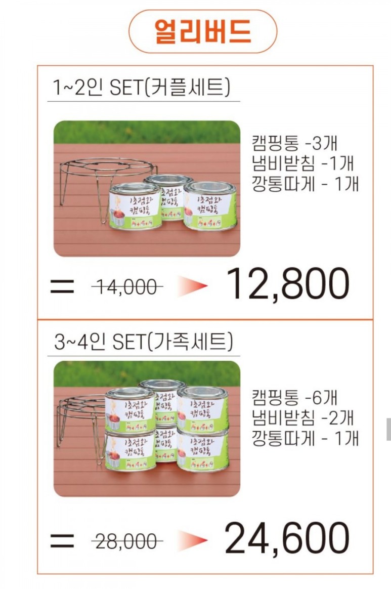 구매방법 #와디즈 에서 펀딩중이었고, #초보캠핑 #초보차박 #캠핑초보 라서 일단 3개만 사봤어요. 삼발이와 캔따개까지 포함되어 있었습니다. 가격대비 구성이 좋다고 생각했고요.