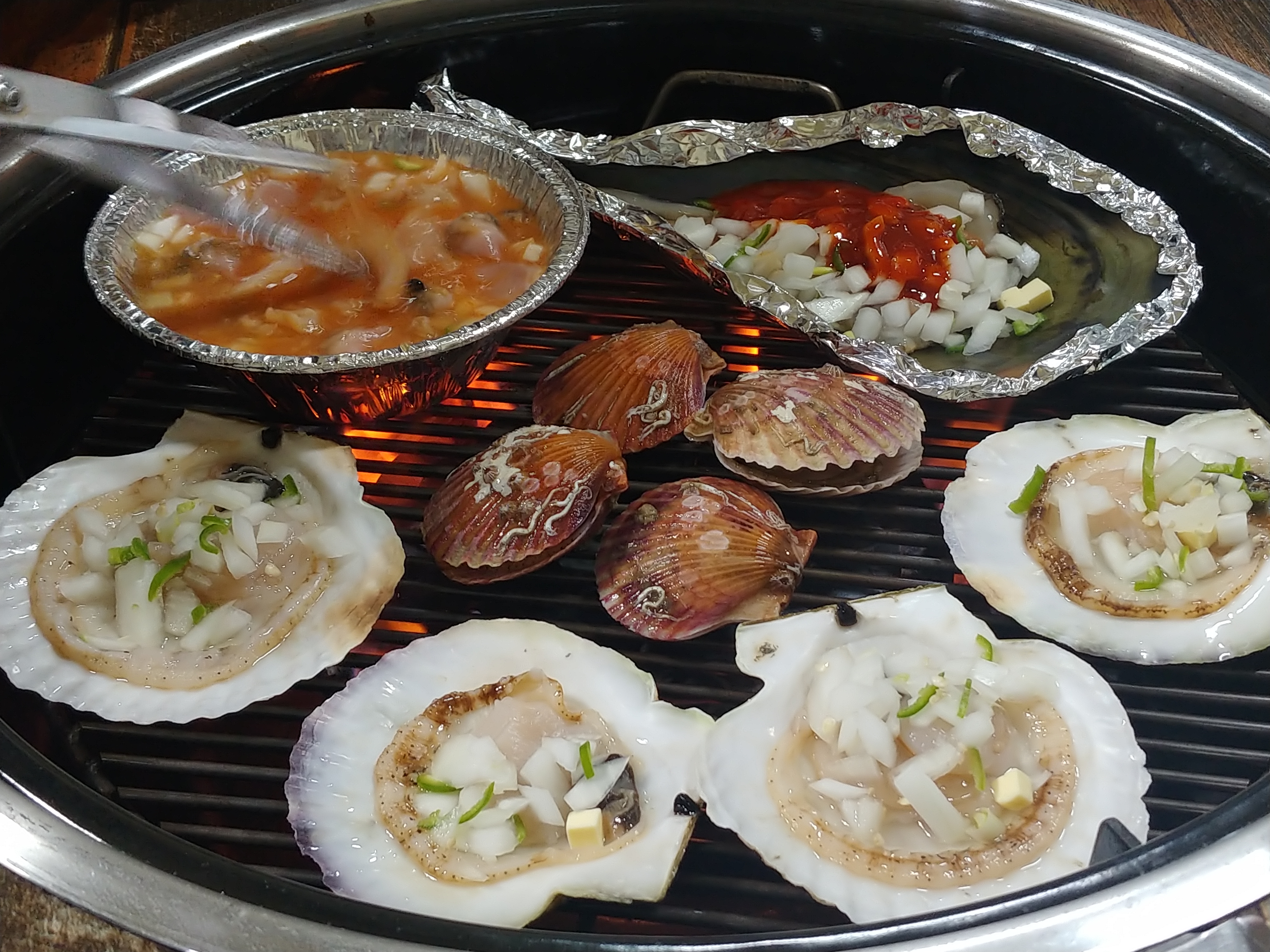 조개가 잘 익고 있습니다ㅠㅠ 열심히 뒤집어가면서 호하호하 먹었더니 언제 다 없어졌는지 모르게 없어지더라고요.