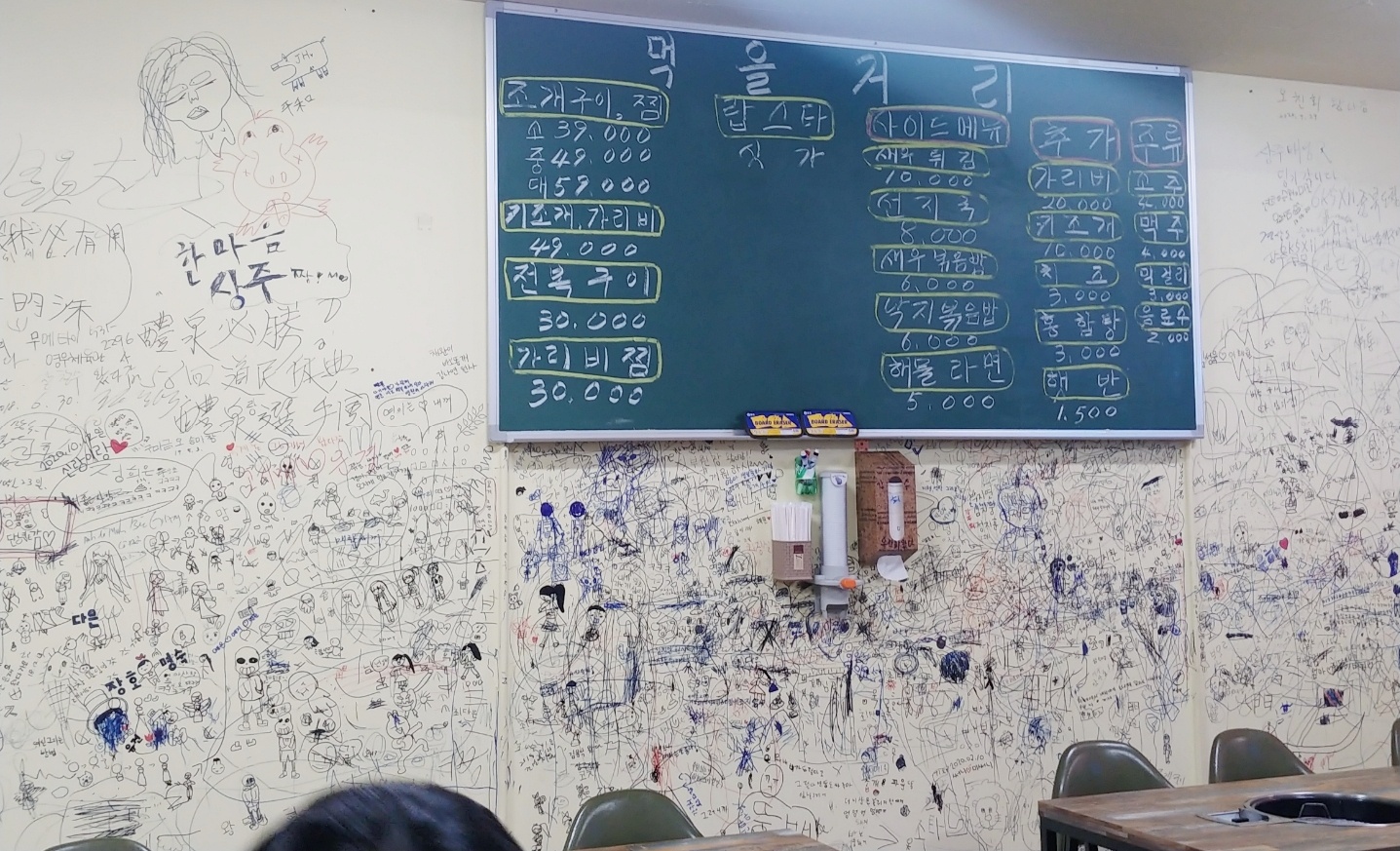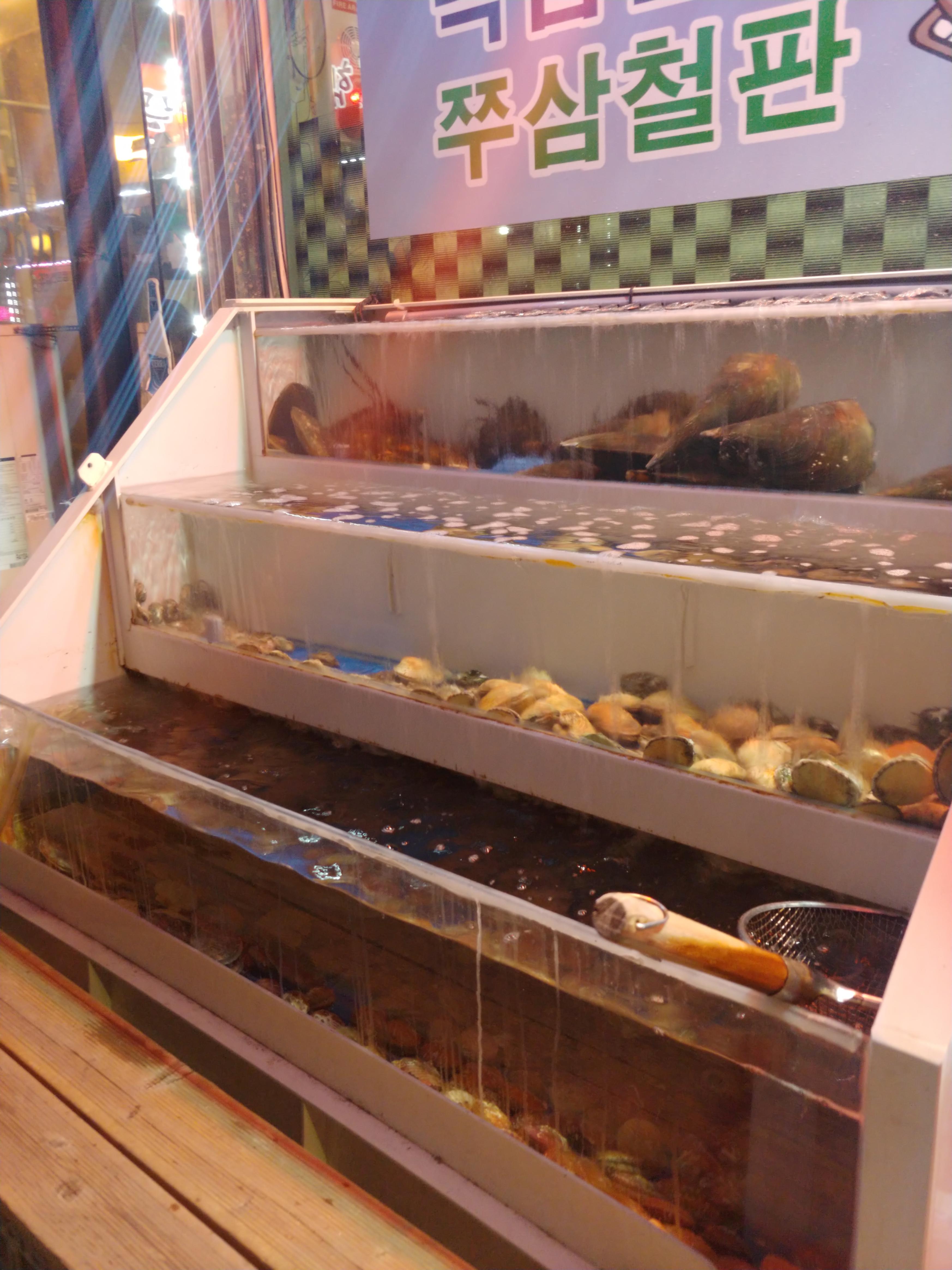 예전에는 고기도 하셨는가 싶은 간판인데, 밑에서 보시면 아시겠지만 해물 구이와 찜을 주 메뉴로 하고 계세요. 수족관도 큰 편인데, 예전에 포스팅했던 참나무 숯불구이 집에서는 수족관 일부만 한정적으로 사용하고 계셨지만, 여기는 확실히 참나무 숯불구이보다 물량이 많은가 보더라고요. 좋아. 수족관 믿고 들어가보자.
