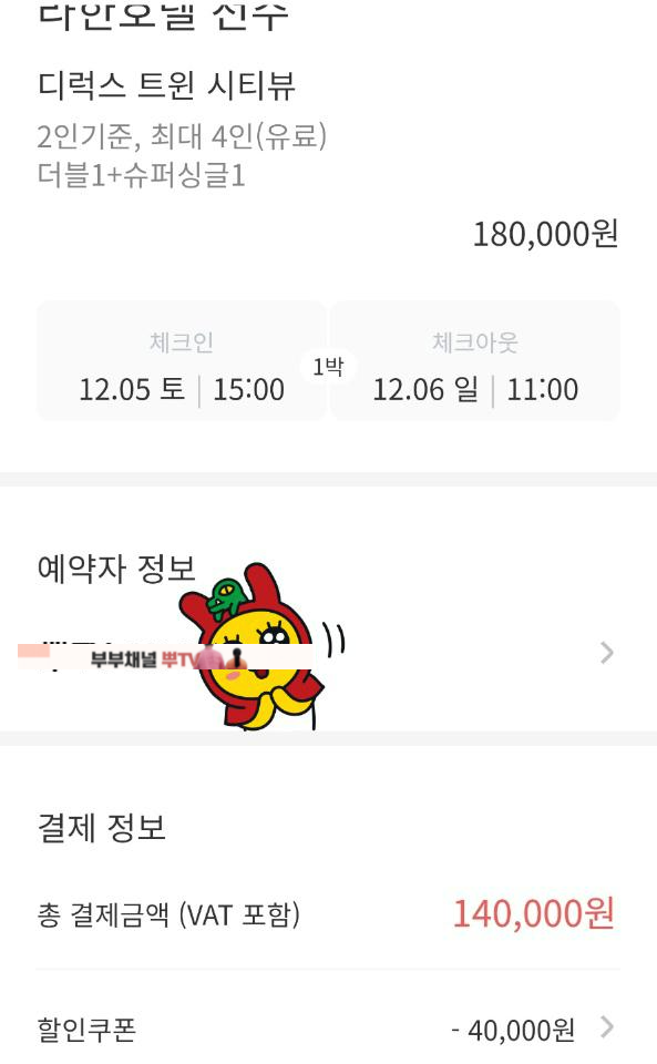 예약 완료! 쿠폰 사용에 어떤 제한이 없네요! 묻지도 따지지도 않고 4만원을 바로 차감해서 14만 원에 예약을 마칠 수 있었습니다 :) 이 가격이 최저가이긴 한걸까요? 호텔 공식 홈페이지에 들어가보았어요.
