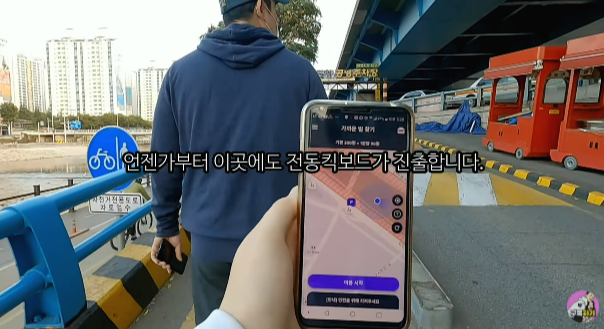 공유 킥보드가 거리에 엄청 많아요.